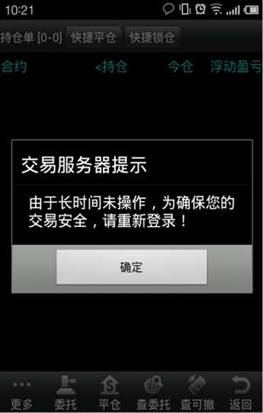 ◇ 當您登錄交易帳號,在 20 分鐘內沒有任何行情功能和交易功能的操作,為了保障資金
