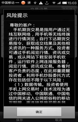 ◇ 顯示風險提示:選擇“顯示”在登錄交易的時候就會出現風險提示對話框。默認“不顯