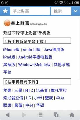 ◇ 在掌上財富下載界面,選擇下載相關的手機品牌型號
