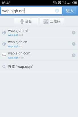 ◇ 在手機上訪問 UC 瀏覽器(或其它支持 wap 網站的瀏覽器),在地址欄中輸入掌上財富客戶端的下載地址:http://wap.sjqh.net ,點擊進入。